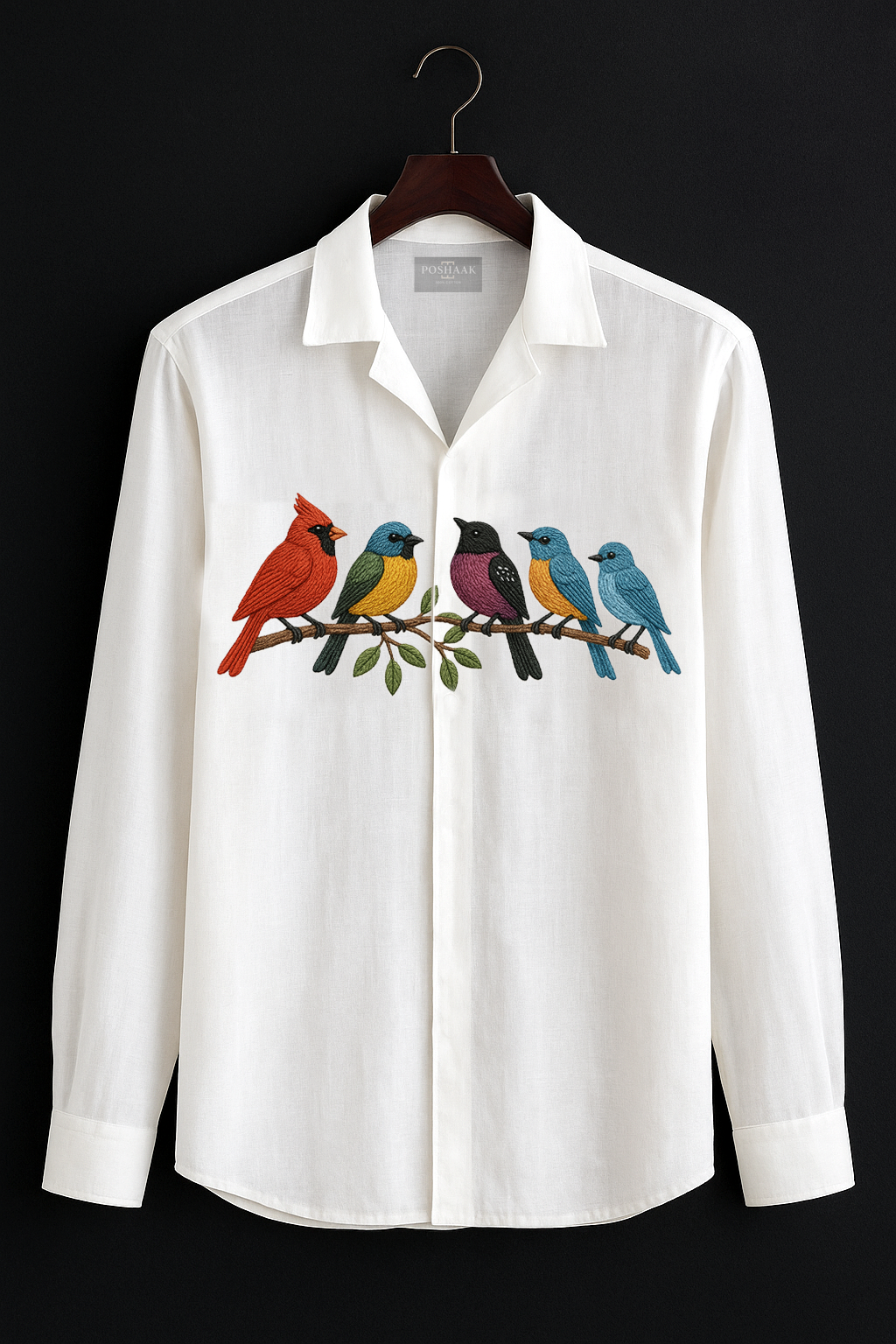 Premium Designer Shirt Leaf Embroidery, Premium Oversize Shirt Bird Design Late Night Layers – perfect for moonlit streets and good company. Designed for those who love bold prints and relaxed fits, this oversized Cuban collar shirt is your go-to for laid-back vibes and standout looks.
