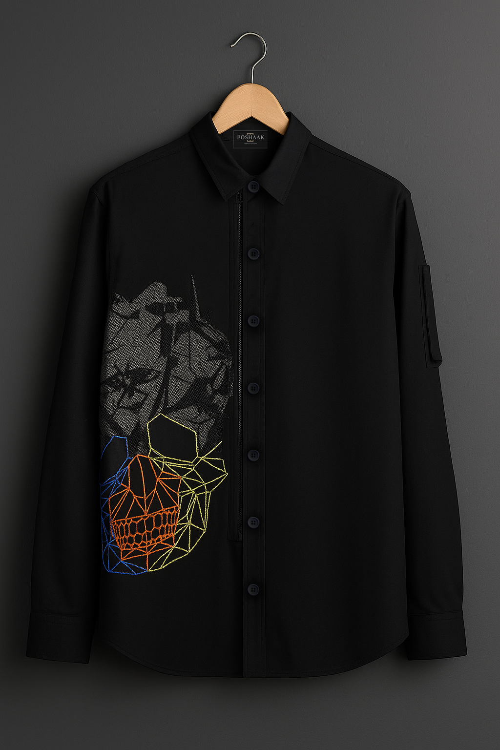 Premium Designer Shirt Black Skull, Premium Oversize Shirt Bird Design Late Night Layers – perfect for moonlit streets and good company. Designed for those who love bold prints and relaxed fits, this oversized Cuban collar shirt is your go-to for laid-back vibes and standout looks.